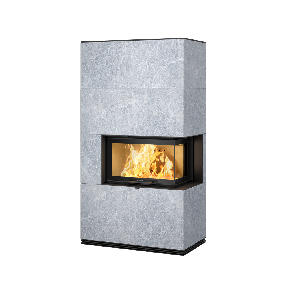 Vogalna vrata kamina Contura i41 vam omogočajo še več možnosti za sestavo edinstvenega kamina, ki bo izstopal in resnično zažarel. Naravni salovec akumulira toploto in ima edinstven vzorec, kar še dodatno poudari njegov poseben videz.