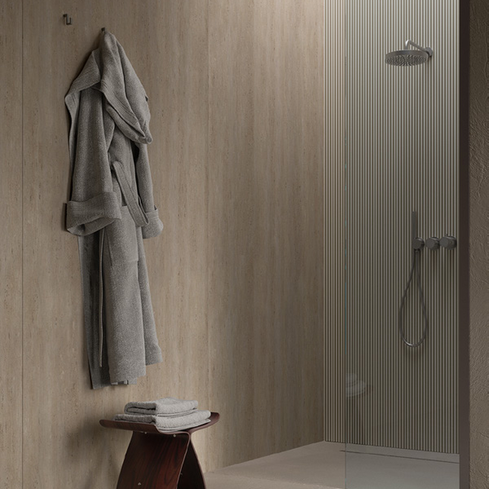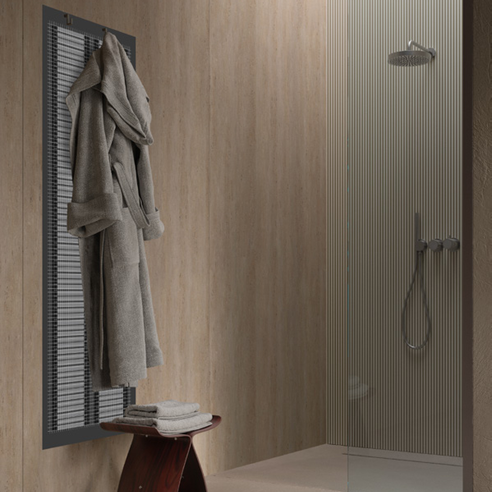 Rezultat je sistem za ogrevanje brisač in kopalnih plaščev, ki se nevidno integrira v stene, ne da bi ogrozil estetiko.
